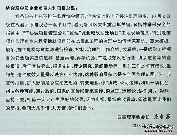 唐桂蓮會長10月8日在收看太原電視臺對公司晉源區(qū)政府采購項目的報道后寫的一段寄語